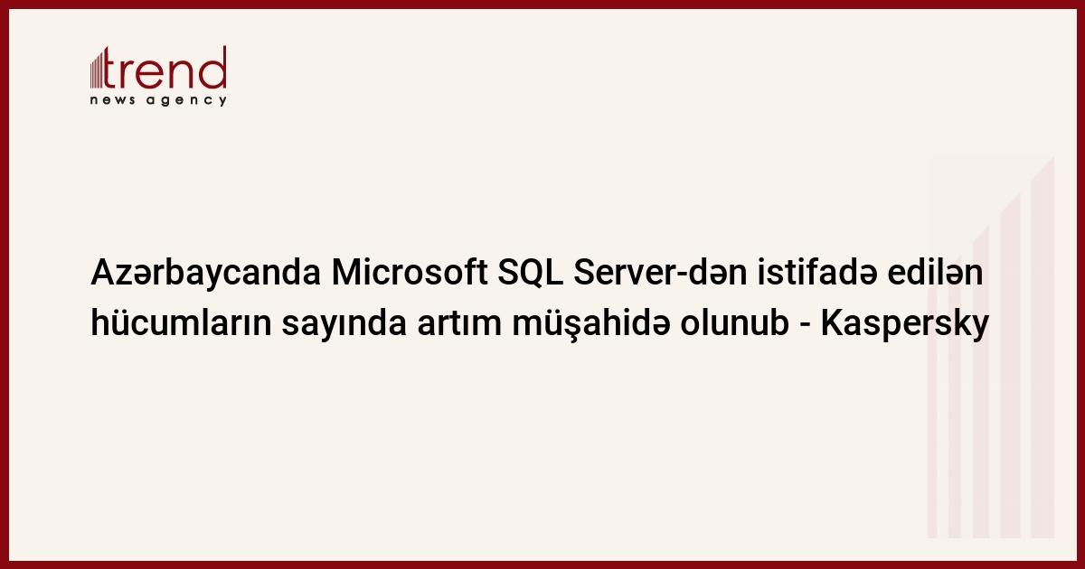 Kaspersky-nin məlumatına görə, Azərbaycanda Microsoft SQL Server-dən istifadə vasitəsilə həyata keçirilən hücumların sayı artmaqdadır: məsələn, bu ilin avqustundan sentyabr ayına kimi onun aktivliyində artım müşahidə olunub. Microsoft SQL Server dünya üzrə korporasiyaların və kiçik şirkətlərin məlumat bazalarını idarə etmək üçün istifadə etdiyi əsas proqram olaraq qalır. Təcavüzkarlar onun vasitəsilə korporativ infrastruktura daxil olmağa çalışırlar.