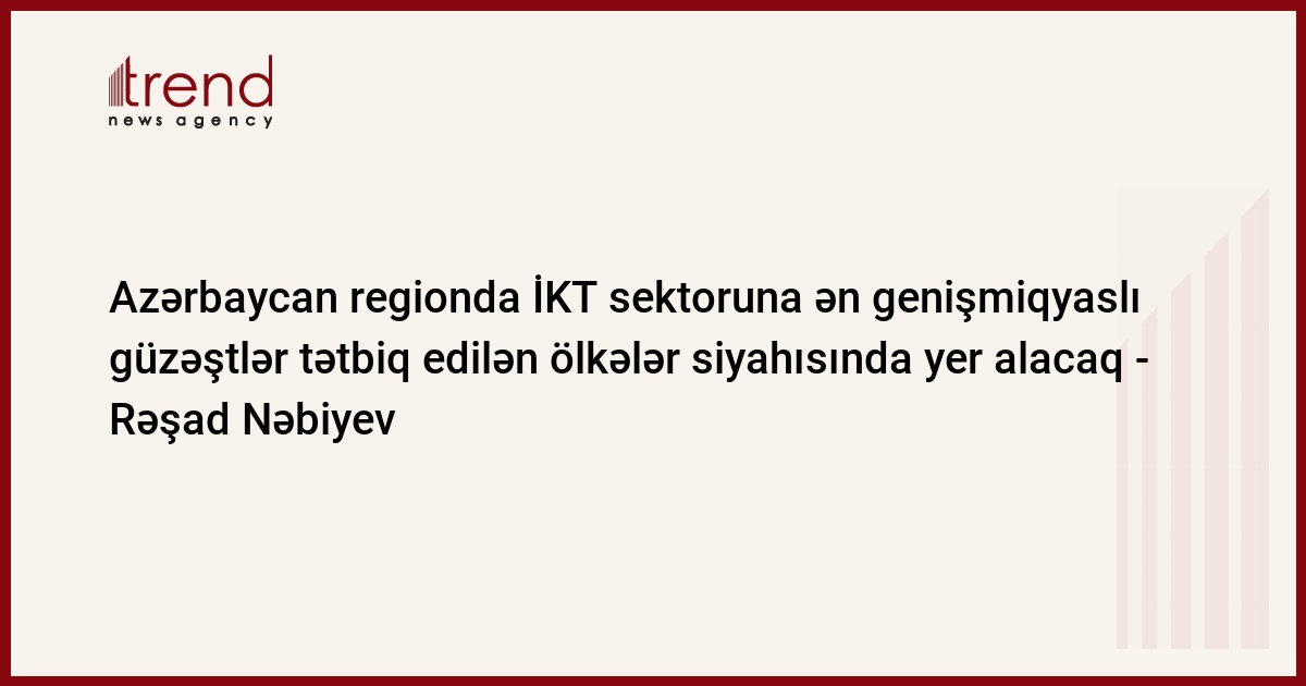 Trend-in məlumatına görə, bunu rəqəmsal inkişaf və nəqliyyat naziri Rəşad Nəbiyev özünün "Facebook" səhifəsində yazıb.