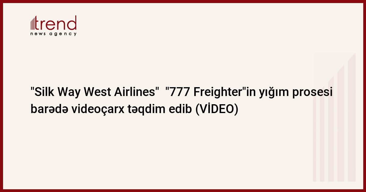 Xəzər dənizi və Mərkəzi Asiya regionunda aparıcı yük aviaşirkəti olan "Silk Way West Airlines" "777 Freighter"in yığım prosesi barədə videoçarx təqdim edib.