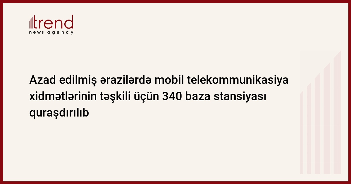 O qeyd edib ki, mobil telekommunikasiya xidmətlərinin təşkili üçün ümumilikdə 340 baza stansiyası quraşdırılıb.
