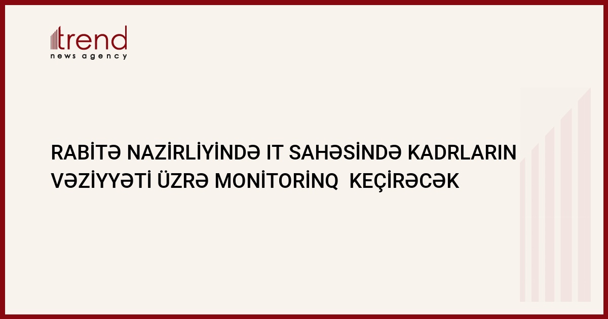 Azərbaycanın Rabitə və informasiya texnologiyaları Nazirliyi IT sahəsində kadrların vəziyyəti ilə bağlı monitorinq keçirməyi planlaşdırır. Bu barədə Nazirliyin elmi potensial və strateji planlaşdırma şöbəsinin müdiri Rüfət Gülməmmədov məlumat verib.