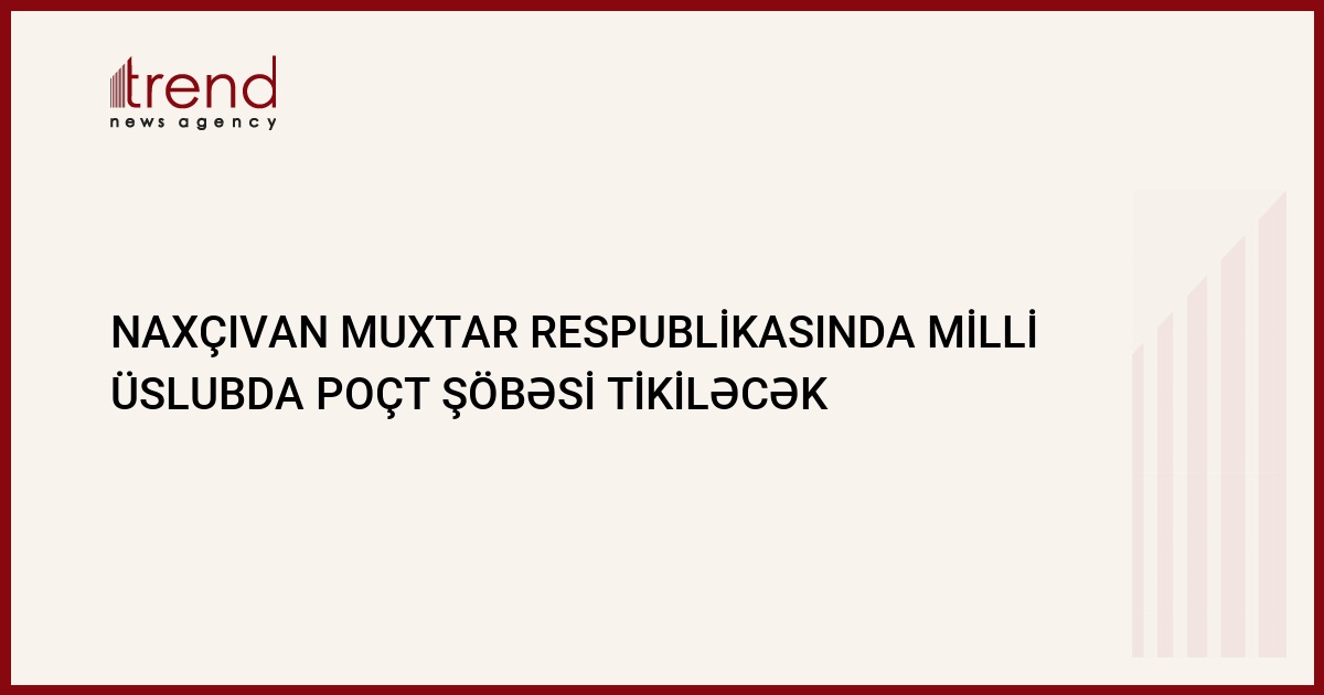 Naxçıvan Muxtar Respublikasında (NAR) milli üslubda poçt şöbəsi tikiləcək. Azərpoçt Dövlət Müəssisəsində Trend ə bildirildiyi kimi, obyekt NMR-in Rabitə və İnformasiya Texnologiyaları Nazirliyi tərəfindən DM-in vəsaitləri hesabına inşa ediləcək.