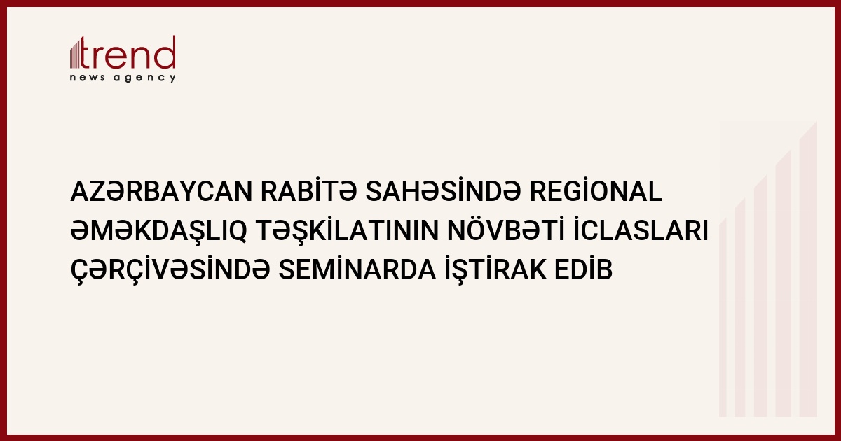 Azərbaycan rabitə sahəsində regional əməkdaşlıq təşkilatının növbəti iclasları çərçivəsində beynəlxalq seminarda iştirak edib. Rabitə və İnformasiya Texnologiyaları Nazirliyinin poçt şöbəsinin müdiri Novruz Məmmədovun Trend ə bildirdiyinə görə, seminar poçt rabitəsində informasiya və kommunikasiya texnologiyalarının tətbiqinə həsr olunub.