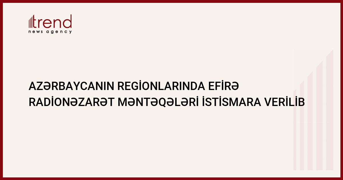 Azərbaycanın regionlarında efirə radionəzarət məntəqələri istismara verilib. Dövlət Radio Tezlikləri İdarəsinin radiotezliklər şöbəsinin müdiri Adil Məhsimovun Trend ə bildirdiyi kimi, bu günlərdə Əli-Bayramlı və Qubada 2 obyekt istismara verilib.