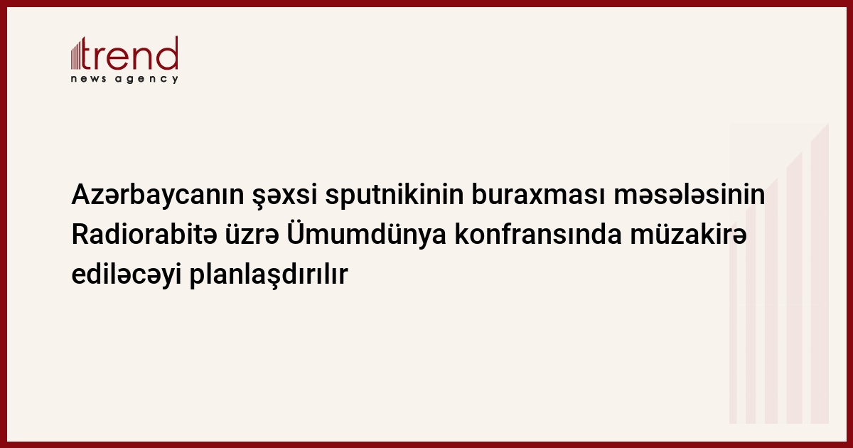 Azərbaycanın öz sputnikinin orbitə buraxılması məsələsinin 2007-ci ildə Cenevrədə keçiriləcək Radiorabitə üzrə Ümumdünya konfransında müzakirə ediləcəyi planlaşdırılır. Trend in xəbər verdiyi kimi, bu barədə Rabitə və İnformasiya Texnologiyaları Nazirliyinin baş mütəxəssisi Qulam Abdullayev bildirib.
