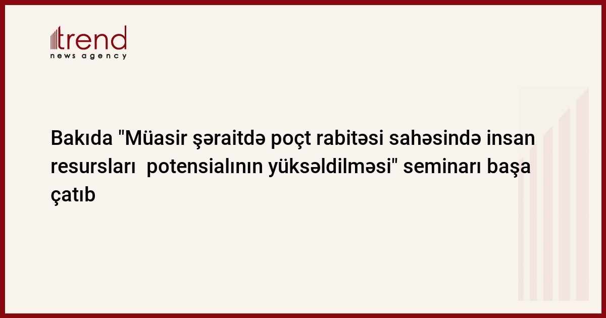 Bakıda "Müasir şəraitdə poçt rabitəsi sahəsində insan resursları potensialının yüksəldilməsi" mövzusunda keçirilən beynəlxalq seminar bu gün öz işini başa çatdırıb. Azərbaycan Rabitə və İnformasiya Texnologiyaları Nazirliyinin dövlət müəssisələrinin fəaliyyətinin koordinasiyası şöbəsinin poçt sektorunun müdiri Novruz Məmmədovun Trend ə verdiyi məlumata görə, tədbirdə müxtəlif mövzuda, o cümlədən "Poçt rabitəsi müəssisələri üçün kadrların hazırlanması" mövzusunda məruzələr dinlənilib. Ümumdünya Poçt İttifaqının nümayəndəsi "Treninqlərin təşkili üzrə strategiyalar və proqramlar", "Trainpost" proqramı və distansion təhsil", "AzTelekom" İB-nin tədris mərkəzinin başçısı Qəzənfər Rüstəmov "Kadrların təkmilləşdirilməsində distansion təhsilin rolu" mövzusunda, eləcə də Rusiya, Ukrayna və Estoniya nümayəndələri məruzələrlə çıxış ediblər.