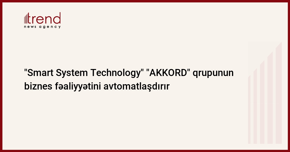 "Smart System Technology" şirkəti "AKKORD" qrupunun biznes fəaliyyətinin avtomatlaşdırılması üzrə işlər aparır. Bu barədə Trend ə şirkətdən məlumat verilib.