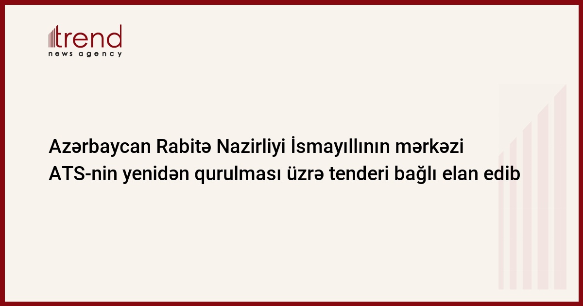 Azərbaycan Rabitə və İnformasiya Texnologiyaları Nazirliyinin Aztelekom İstehsalat Birliyinin İsmayıllı Telekommunikasiya Qovşağı İsmayıllıda mərkəzi ATS-in tam yenidən qurulması üçün tenderi bağlı elan edib. Bu barədə Trend xəbər verir.