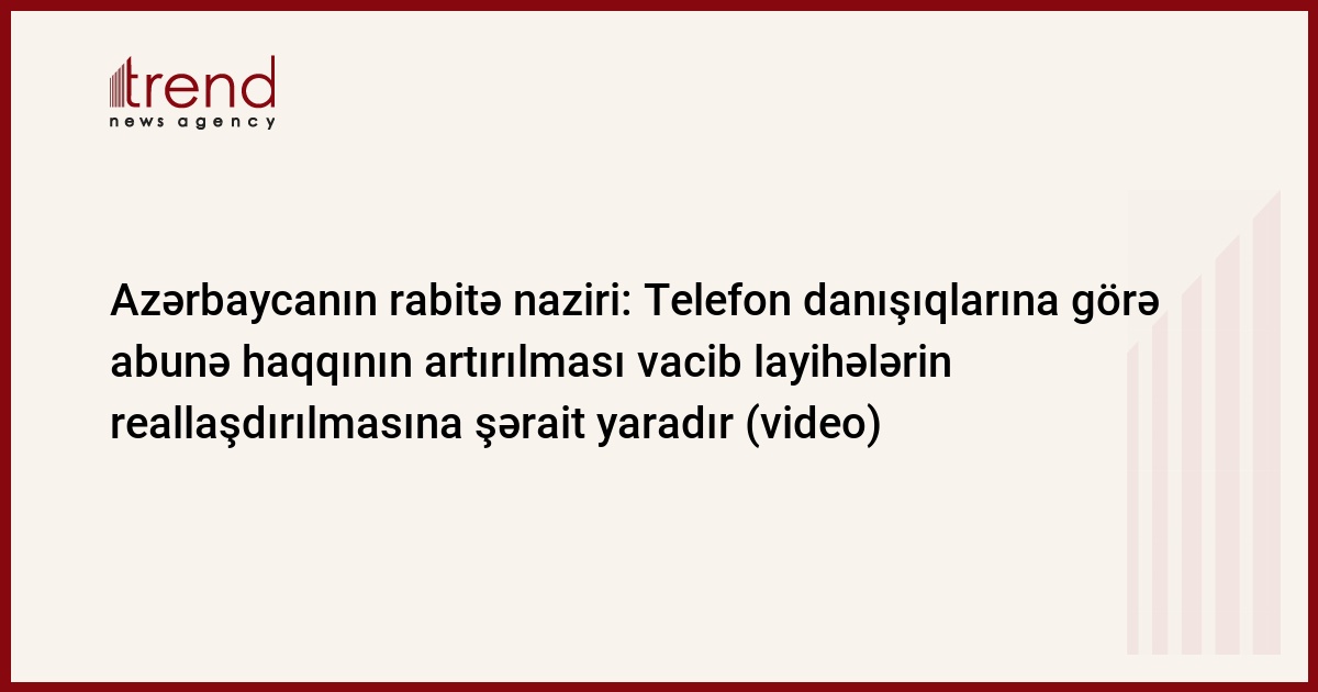 Azərbaycan,Bakı/müxbir Trend Ü.İsmayılova/ Azərbaycanın rabitə və informasiya texnologiyaları naziri Əli Abbasov cümə axşamı bəyan edib ki, Tarif Şurasının yerli danışıqlara görə tariflərin artırılması haqqında qərarı ilə razıdır, belə ki, abunə haqqının artırılması əlavə investisiyalar üçün şərait yaradan layihələrin reallaşdırımasına imkan verəcək.