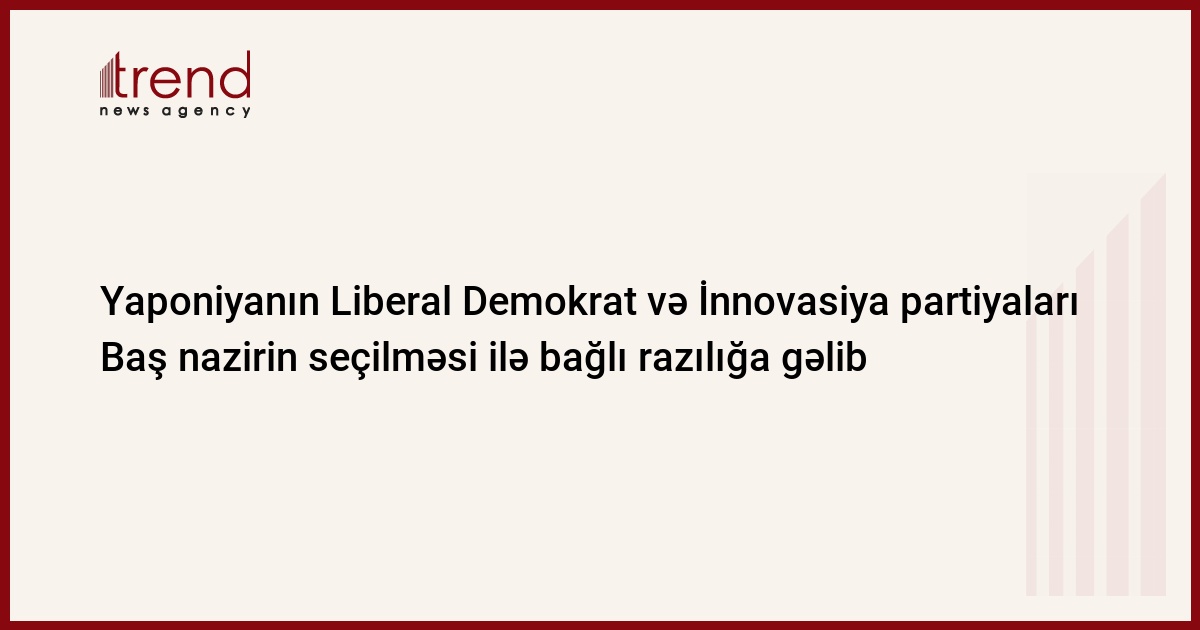Yaponiyanın hakim Liberal Demokrat Partiyası (LDP) ilə müxalif Yaponiya İnnovasiya Partiyası (YİP) Takaiçi Sanaenin ölkənin Baş naziri vəzifəsinə namizədliyini dəstəkləmək barədə razılıq əldə edib.