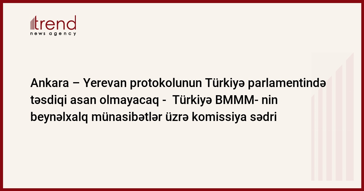 Türkiyə Böyük Millət Məclisinin beynəlxalq münasibətlər üzrə komissiya sədri Murat Mərcan Türkiyənin CNN Türk telekanalına verdiyi açıqlamada Ankara - Yerevan protokolunun Türkiyə parlamentində təsdiqinin asan olmayacağını bilrib.