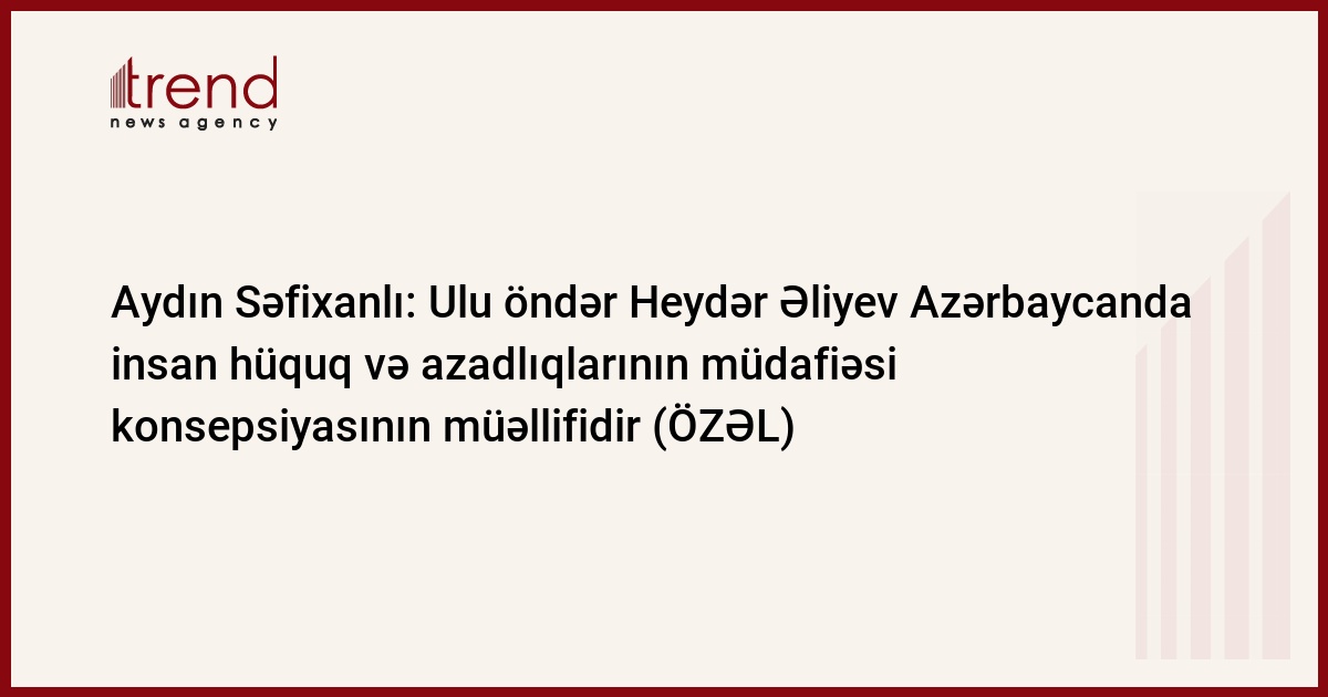 Dahi şəxsiyyət, görkəmli ictimai-siyasi və dövlət xadimi, Azərbaycanın dövlətçilik tarixində əvəzsiz rolu olan Heydər Əliyev Azərbaycanda insan hüquq və azadlıqlarının müdafiəsi konsepsiyasının müəllifidir.