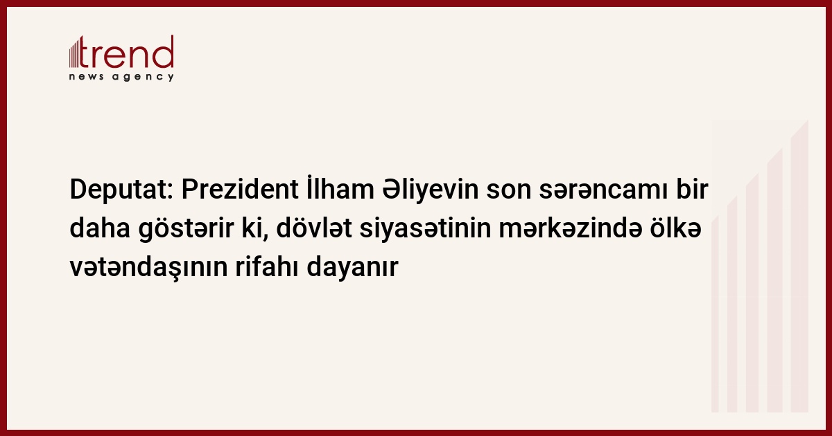 Millət vəkili bildirib ki, Azərbaycan Prezidentinin sərəncamı hər şeydən əvvəl dövlət başçısının vətəndaşların rifahını və layiqli həyatının təmin olunmasını daim diqqət mərkəzində saxlamasının bariz göstəricisi kimi qiymətləndirilməlidir:
