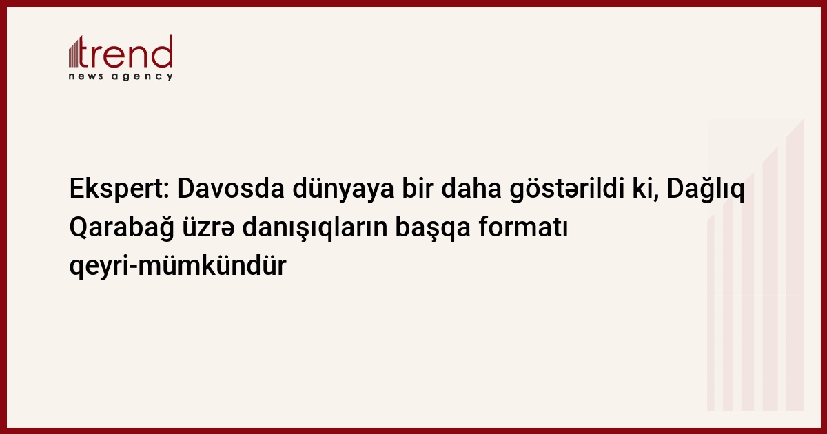 "Forumun rəhbəri bu görüşün baş tutmasını niyə vacib bildi və vasitəçilik etdi? Əsasən dünyanın iqtisadi problemlərinin birbaşa müzakirəsi üzrə ixtisaslaşan Davos Forumunda belə bir görüşə təşəbbüs göstərilməsi həqiqətən düşündürücüdür və müəyyən diplomatik mənaları var. Dünya İqtisadi Forumunun rəhbərliyi bizim regionda, xüsusilə də Azərbaycanın təşəbbüsü və dəstəyi ilə həyata keçirilən iqtisadi, ticarət, investisiya, nəqliyyat-tranzit layihələrinin böyük nəticələrini sozsüz ki, izləyir və Dağlıq Qarabağ probleminin həlli ilə regionumuzda inkişaf və rifah proseslərinin yeni mərhələsinin başlayacağına əmindir. Bu mənada Forum rəhbərliyinin təşəbbüskarlığını Azərbaycan Prezidentinin regional təhlükəsizlik və infrastruktur layihələr siyasətinə birbaşa dəstək jesti kimi başa düşmək lazımdır. Həm də tək bu mənada yox, Forum rəhbərliyi Ermənistanın qeyri-konstruktiv mövqeyinin və münaqişənin həll olunmamasının regional inkişaf yolunda böyük maneə olduğunu da erməni liderə anlatmaq istədi".