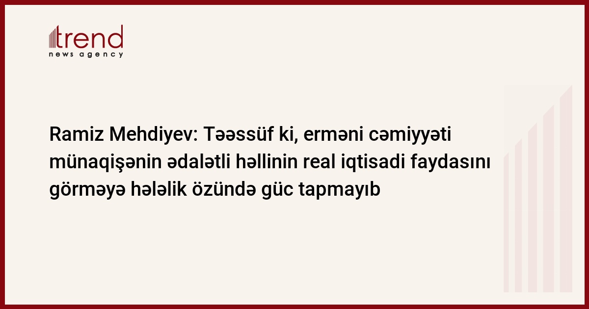 Trend-in məlumatına görə, bu barədə Azərbaycan Respublikası Prezidenti Administrasiyasının rəhbəri Ramiz Mehdiyevin "Ermənistan-Azərbaycan Dağlıq Qarabağ münaqişəsi: problemin mənbələri və nizamlanma perspektivləri" adlı məqaləsində deyilir.