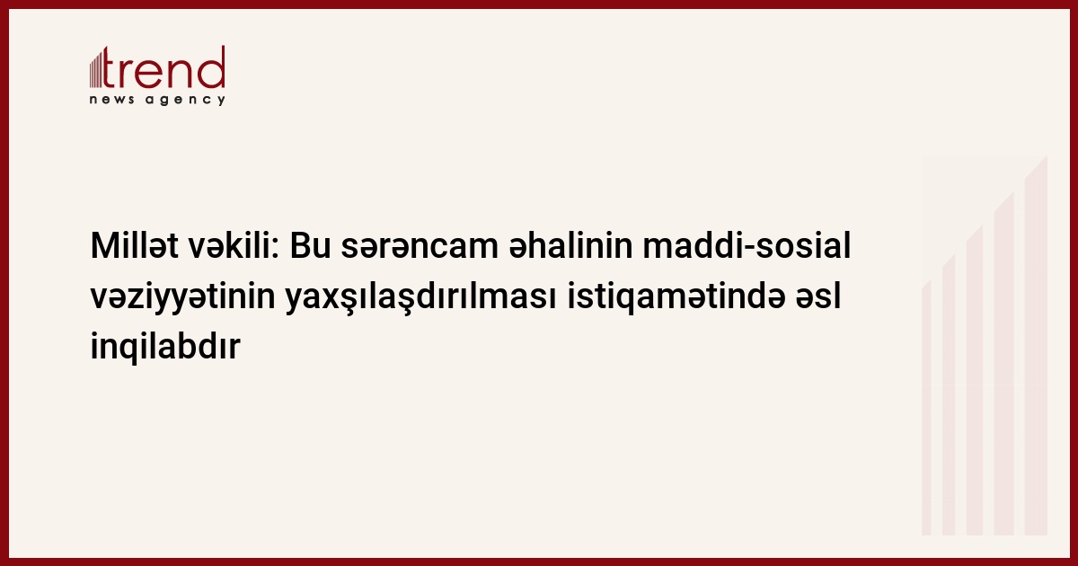 Deputatın sözlərinə görə, bu sərəncam ölkəmizdə vətəndaşların maddi rifah halının yaxşılaşdırılması istiqamətində 2019-cu ilin elə ilk aylarından atılan inqilabi addımların davamıdır: “Bildiyiniz kimi, bu ilin mart ayının 1-dən minimim aylıq əməkhaqqı 38,4 faiz, yəni 50 manat artırılaraq 130 manatdan 180 manata çatdırıldı. Bununla da Azərbaycanda təxminən 400 mindən çox vətəndaşın əməkhaqqısı yüksəldi. Sentyabr ayının 1-dən isə minimum əməkhaqqı nəzərəçarpacaq dərəcədə qaldırılır və 250 manat müəyyənləşib. Bu isə ötən ilə nisbətdə təxminən 100% artım deməkdir. Ona görə də bu sərəncamı əhalinin maddi-sosial vəziyyətinin yaxşılaşdırılması istiqamətində əsl inqilab adlandırmaq olar”.