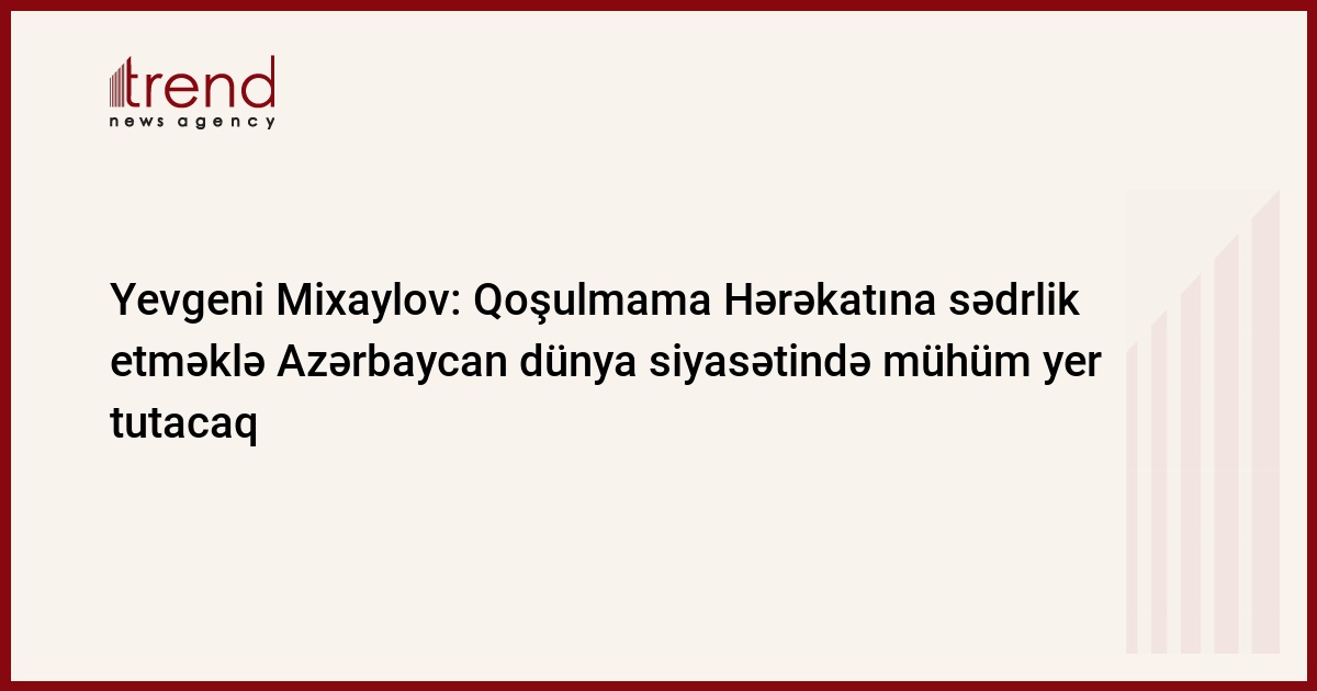 Azərbaycan Qoşulmama Hərəkatında sədrliyi bir neçə illik qəbul edib və bu, dünya siyasətində mühüm hadisədir.