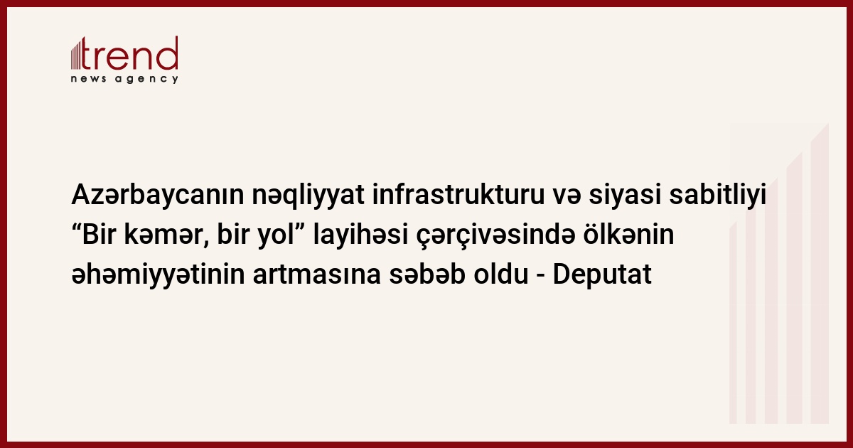 Deputat qeyd edib ki, "Azərbaycan Çinin "Bir kəmər, bir yol" təşəbbüsünü ilk dəstəkləyən ölkələrdəndir.
