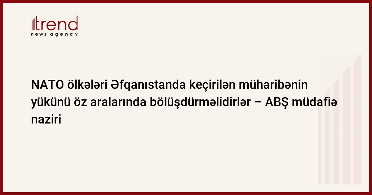 ABŞ müdafiə naziri Roberts Qeyts Avropa ölkələrini Əfqanıstanda koolisiya qüvvələrinin hərbi missiyasını dəstəkləməyə çağırıb. O, Münxen konfransında çıxışı zamanı bildirib ki, əgər Avropa ölkələri Əfqanıstanda keçirilən müharibənin yükünü öz aralarında bölüştürməsələr bu NATO-nu təhlükə altına qoya bilər. RBK xəbər verir.