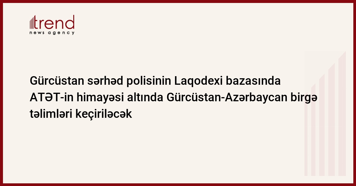 Gürcüsan, Tbilisi, 06 avqust/ Trend , müxbir N.Kirtsxaliya/ Gürcüstanın sərhəd polisinin Laqodexi bazasında Gürcüstan və Azərbaycandan olan 16 sərhədçi və gömrükçü birgə təlimlər keçəcəklər. Sərhəd polisinin mətbuat xidmətindən bildiriblər ki, təlimlər çərşənbə günü başlayıb və transsərhəd cinayətlərinin qarşısının alınmasına həsr olunub.