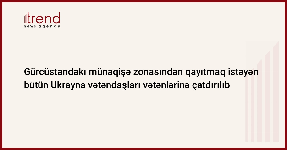 Ukrayna, Kiyev, 13 avqust / Trend , müxbir Z.Novosvitski/ Bu gün səhərə olan vəziyyətə görə, Gürcüstandakı münaqişə zonasından geri qayıtmaq istəyən bütün Ukrayna vətəndaşları və onların ailə üzvləri vətənlərinə çatdırılıb.