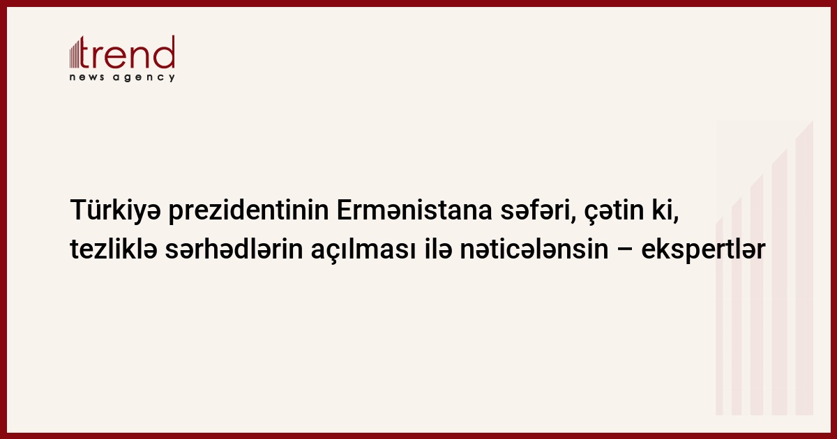 Azərbaycan, Bakı, 04 sentyabr/ Trend , müxbir E.Tariverdiyeva, V.Javronkova, R.Hafizoğlu/ Ekspertlərin rəyinə görə, Türkiyə prezidenti Abdullah Gülün Ermənistana səfəri, çətin ki, iki ölkə arasında sərhədlərin tezliklə açılması ilə nəticələnsin.