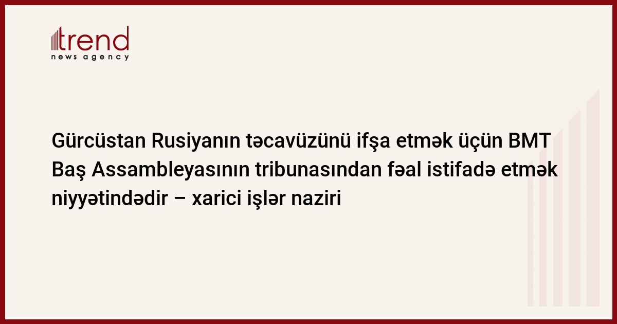 Gürcüstan, Tbilisi, 18 sentyabr/ Trend , müxbir N.Kirtsxaliya/ Gürcüstan BMT Baş Assambleyasının formatından fəal istifadə etmək niyyətindədir, Gürcüstanın xarici işlər naziri Yekaterina Tkeşelaşvili cümə axşamı jurnalistlərə bildirib.