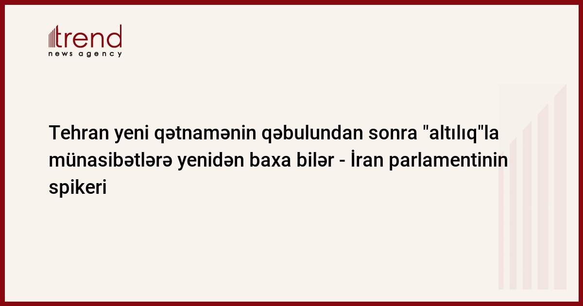 İran parlamentinin spikeri həmçinin qeyd edib ki, bu cür addımlar danışıqlar prosesinin rolunu azaldır: "İstisna deyil ki, bu siyasi əyləncə ilə bağlı digər qərarlar qəbul etmək gərək olacaq".