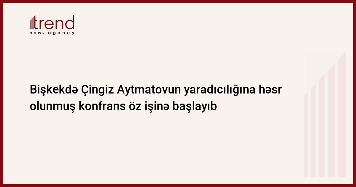 Qırğızıstan, Bişkek, 16 sentyabr / Trend müxbir R.Məşədihəsənli/ Bu gün Bişkekdə Qırğız-Türk Manas Universitetində Çingiz Aytmatovun 80 illik yubileyi tədbirləri çərçivəsində beynəlxalq elmi-nəzəri konfrans öz işinə başlayıb.