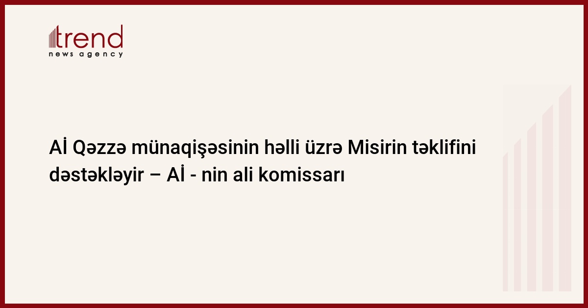 Azərbaycan, Bakı, 12 yanvar/ Trend , müxbir Y.Ostapenko/ Avropa İttifaqı Qəzzə Zolağında atəşkəs rejiminin təmin edilməsi üzrə danışıqları, eləcə də Misirin İsrail-Fələstin münaqişəsinin nizamlanmasına dair təklifini tam dəstəkləyir, - Avropa İttifaqının xarici siyasət üzrə ali komissarı Havyer Solana elektron poçtla Trend -a bildirib.