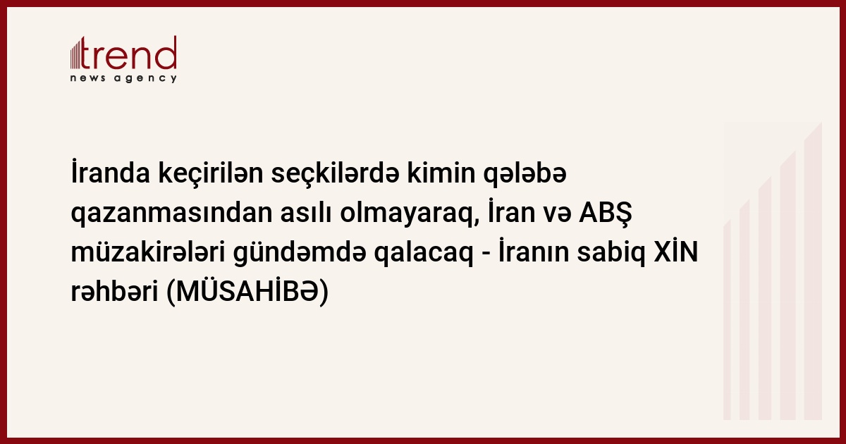 Fikrimcə, İrandakı seçkilərdə kimin qələbə qazanmasından asılı olmayaraq, İranda ABŞ-la müzakirələr aparmaq üçün qərar qəbul edənlər bu məsələ yanə də müsbət baxacaqlar. İranda Əhmədinejad və ya digər namizədin prezident olmasının bu məsələ ilə bağlı heç bir əlaqəsi yoxdur. Bu məsələdə son qərarı prezident deyil, Milli Təhlükəsizlik Şurası qəbul edir. İranda Konstitusiyaya əsasən, xarici siyasəti İranın Milli Təhlükəsizlik Şurası müəyyənləşdirir və İranın rəhbəri təsdiq edir. Fikrimcə, İranda keçirilən seçkilərdən sonra kimin qələbə qazanmasından asılı olmayaraq, İran və ABŞ arasında müzakirələr gündəmdə qalacaq.