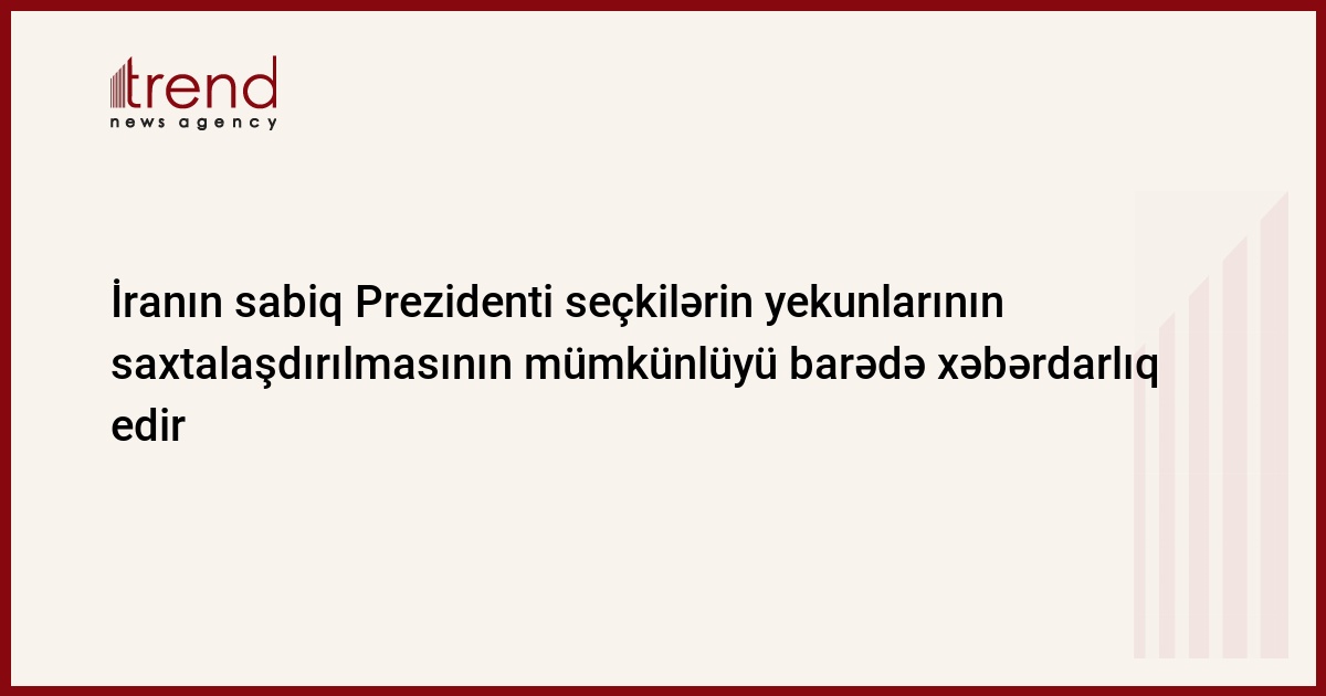İranın sabiq Prezidenti keçiriləcək prezident seçkilərinin yekunlarının saxtalaşdırmasının mümkün olması barədə xəbərdarlıq edir.