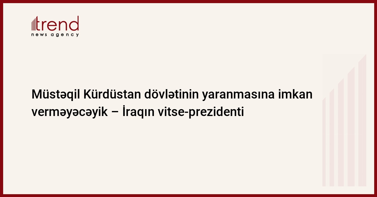 İraqın vitse-prezidenti Tariq əl-Haşimi Ankaraya səfəri çərçivəsində Türkiyə Prezidenti Abdullah Gül və Baş nazir Rəcəb Tayyib Ərdoğanla görüşü zamanı İraqda heç vaxt müstəqil Kürdüstan dövlətinin yaranmayacağını bildirib. Bu barədə Türkiyənin ANADOLU informasiya agentliyi məlumat verib.