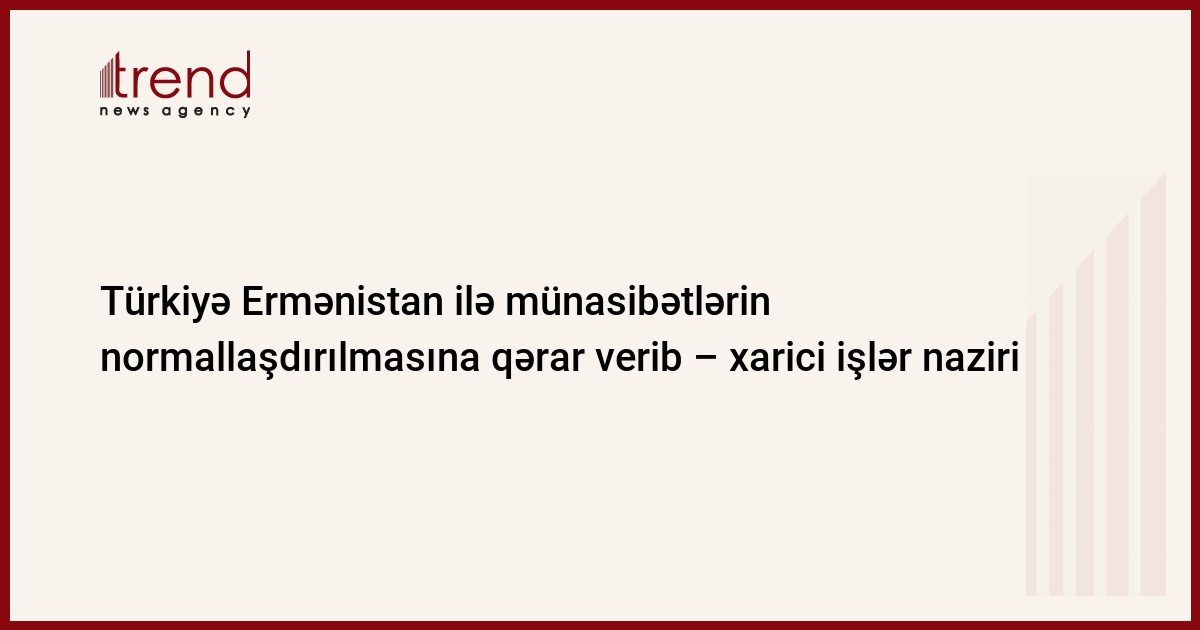 Davudoğlu bildirib ki, Türkiyə Ermənistan ilə münasibətlərin normallaşdırılması prosesini davam etdirməyə qərar verib.