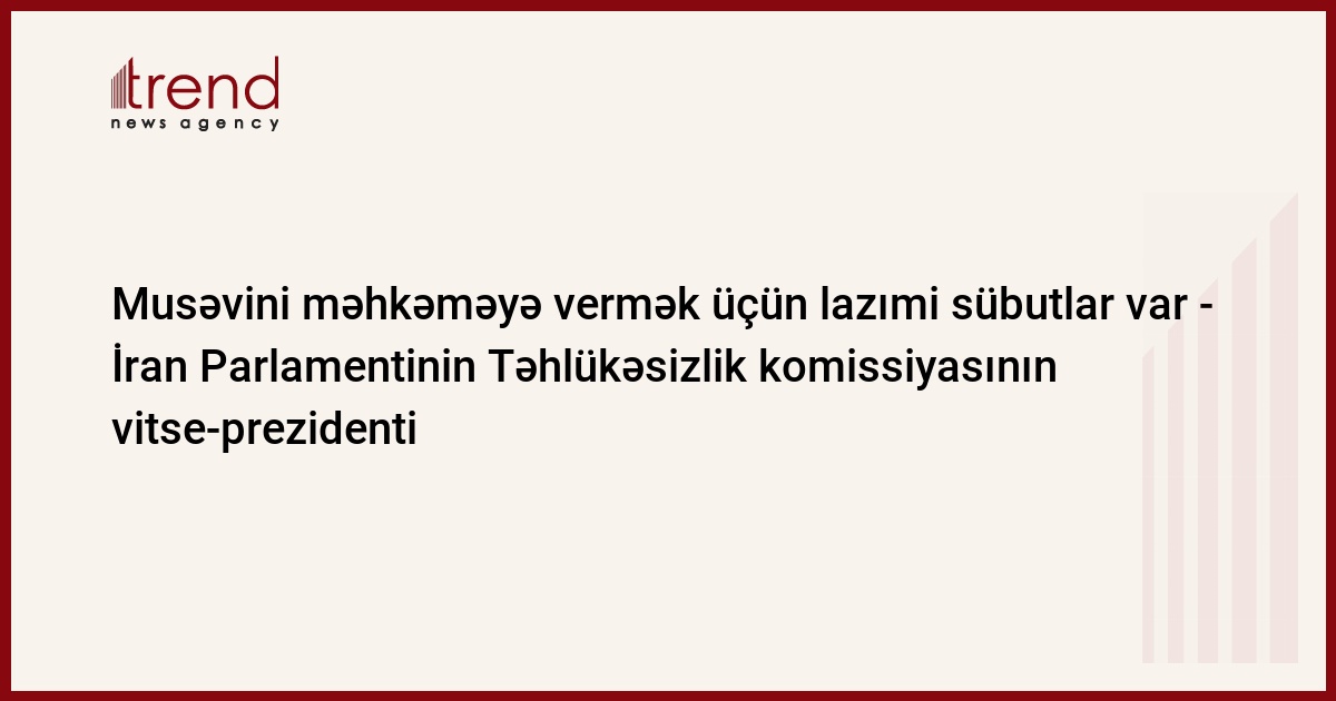 Musəvi və digər islahatçı liderlərin məhkəməyə verilməsi və həbsi üçün kifayət qədər sübutlar, sənədlər və faktlarımız var. Bu barədə İran Parlamentinin Təhlükəsizlik komissiyasının vitse-prezidenti İsmayıl Kövsəri Trend -a bildirib.