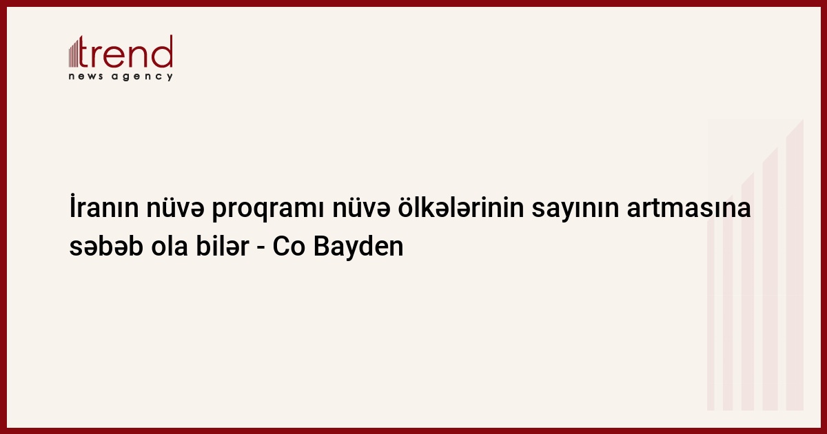 "İranın nüvə silahı hazırlamaması bütün dünyanın, eləcə də İran xalqının və Avropa xalqlarının maraq dairəsindədir. İş onda deyil ki, o, bizə deyil, Avropa və digər dünya ölkələrinə təlükə yarada bilər, iş ondadır ki, bu, nüvə ölkələrinin sayının artmasına səbəb ola bilər", - Bayden bildirib.