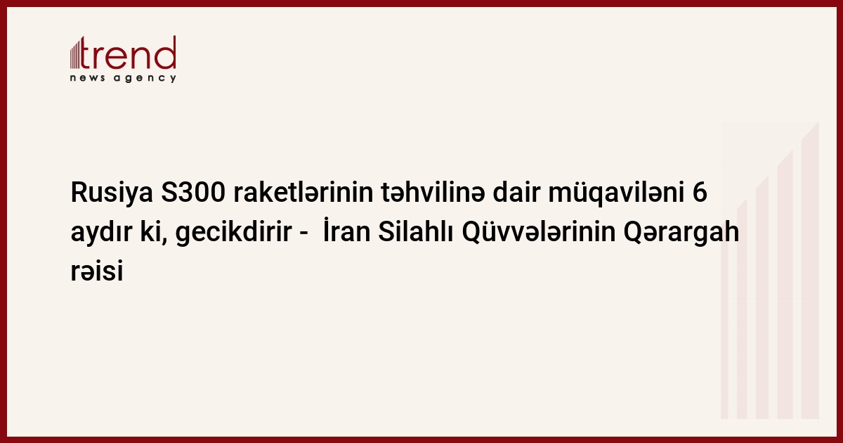 İran Silahlı Qüvvələrinin Qərargah rəisi general Həsən Firuzadabdi bildirib ki, Rusiya S300 raketlərinin təhvilinə dair müqaviləni 6 aydır ki, gecikdirir. Bu barədə İranın MEHR xəbər agentliyi məlumat yayıb.
