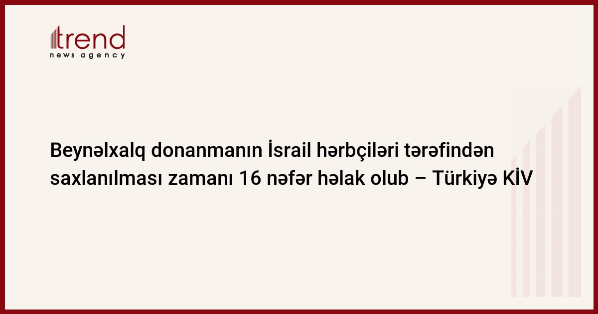 Bu gecə İsrail HDD-nin mühasirədə olan Qəzza sektoruna humanitar yük daşıyan gəmi karvanının ələ keçirilməsi ilə bağlı əməliyyatları zamanı, ən azı, 16 nəfər həlak olub və 30 nəfər yaralanıb. Bu barədə türk KİV-i İsrail televiziyasına istinadən məlumat verib.