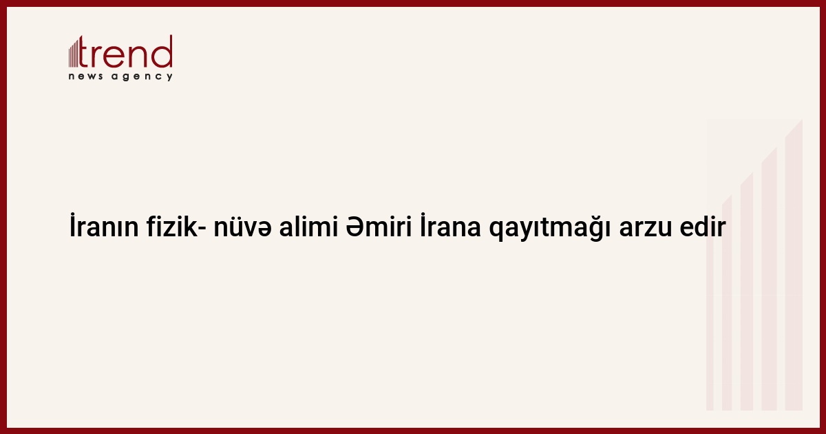 İranın fizik-nüvə alimi Şəhram Əmiri bu ölkənin Vaşinqtonda maraqlarını təmsil edən ofisə müraciət edib, - məlumatı MEHR agentliyi yayıb. Əmiri Vətənə qayıtmaq arzusunu bəyan edib.