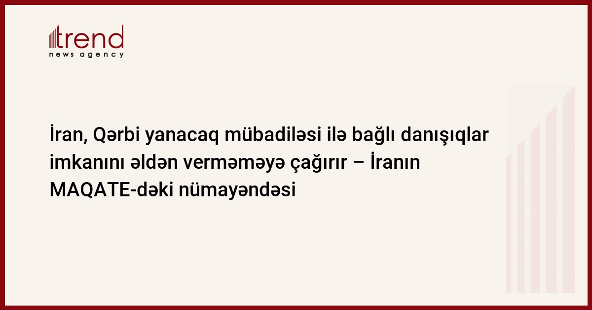 İran İslam Respublikasının Atom Enerjisi üzrə Beynəlxalq Agentlikdəki (MAQATE) daimi nümayəndəsi Əli Əsgər Sultaniyə Qərbi, İranın Vyana qrupuna (ABŞ, Fransa, Rusiya) Tehrandakı tədqiqat reaktoru üçün yanacağın verilməsi haqda göndərdiyi məktubla açdığı imkanı əldən verməməyə çağırıb. Bu barədə ISNA agentliyi xəbər verir.