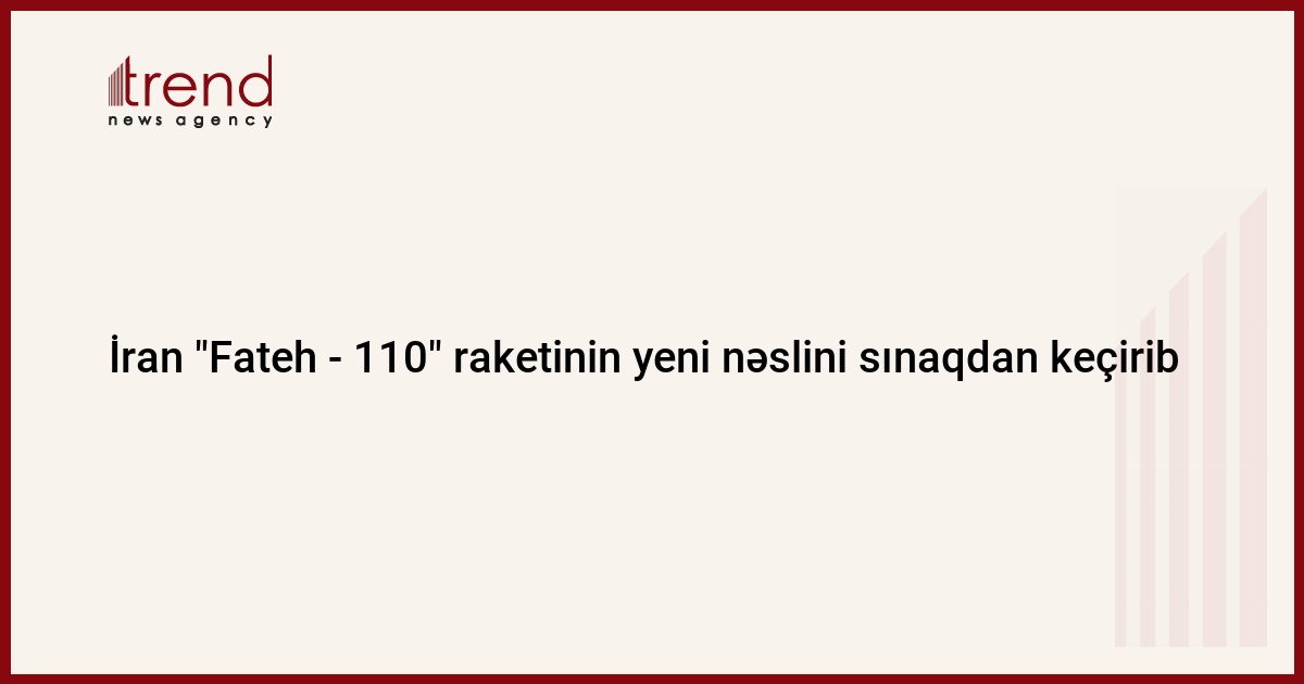 İran "Fateh - 110" raketinin üçüncü nəslinin sınağını keçirib. Bunu İranın müdafiə naziri Əhməd Vəhidi deyib. Bu barədə FARS xəbər agentliyi məlumat verib.