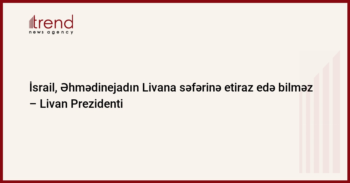 İsrailin İran Prezidenti Mahmud Əhmədinejadın Livana qarşıdakı səfərinə etiraz etməyə haqqı yoxdur. Bu barədə Livan Prezidenti Mişel Süleyman bəyan edib. Məlumatı İRNA agentliyinə istinadən "Press-TV" yayıb.