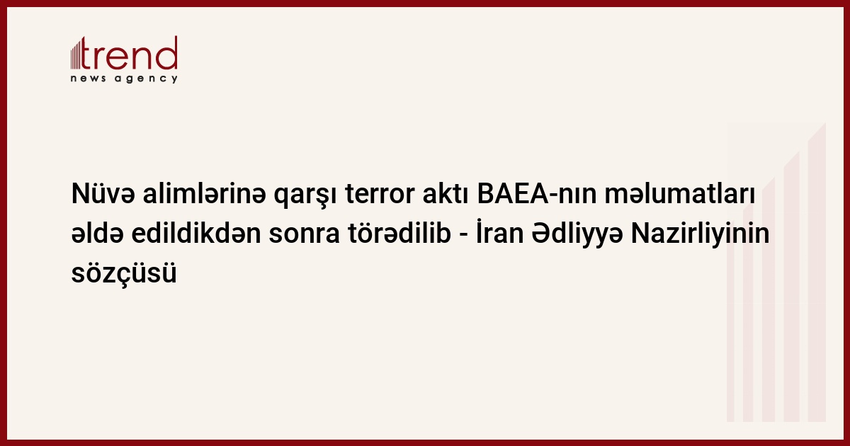 İki nüvə aliminə qarşı terror aktı törədənlər Beynəlxalq Atom Enerjisi Agentliyinin (BAEA) məlumatlarını əldə etməklə öz məqsədlərini həyata keçiriblər. Bu sözləri İran Ədliyyə Nazirliyinin mətbuat katibi Qulamhüseyn Möhsüni Əjeyi bu gün keçirdiyi mətbuat konfransında deyib. Məlumatı MEHR xəbər agentliyi yayıb.