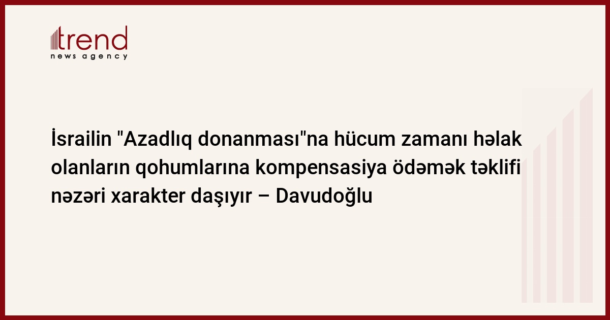 İsrailin mayın 31-də "Azadlıq donanması"na hücum zamanı həlak olan türklərin qohumlarına kompensasiya ödəmək təklifi haqqında məlumatlar nəzəri xarakter daşıyır. Bu barədə cümə axşamı mətbuat konfransında Türkiyənin xarici işlər naziri Əhməd Davudoğlu deyib. Məlumatı CNN Türk telekanalı yayıb.