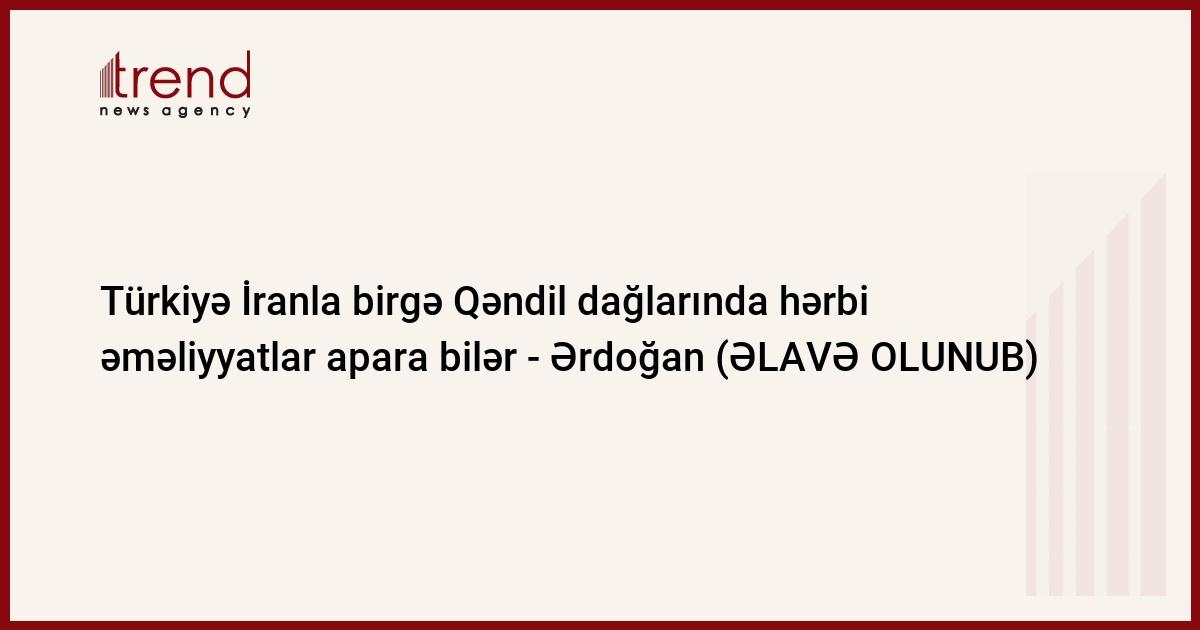 Türkiyə İranla birgə Qəndil dağlarında terrorizmlə mübarizə üzrə hərbi əməliyyatların aparılması mümkünlüyünü nəzərdən keçirir. Trend-in NTV Haber-ə istinadən verdiyi məlumata görə, bu barədə Türkiyənin Baş naziri Rəcəb Tayyib Ərdoğan bəyan edib.