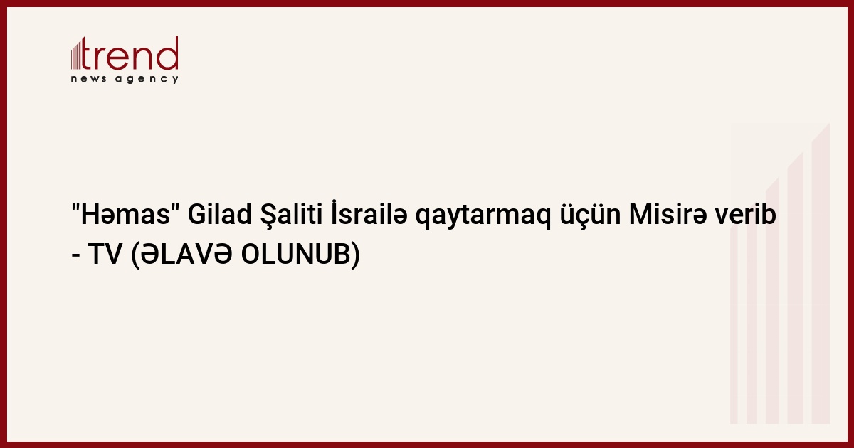 Çərşənbə axşamı Fələstinin "Həmas" islamçı hərəkatı 2006-cı ildən əsirlikdə olan israilli kapral Gilad Şaliti sonradan İsrailə vermək üçün Misirə təhvil verib. Trend-in məlumatına görə, bu barədə "Əl-Cəzirə" telekanalı Misirdəki mənbəyə istinadən xəbər verib.