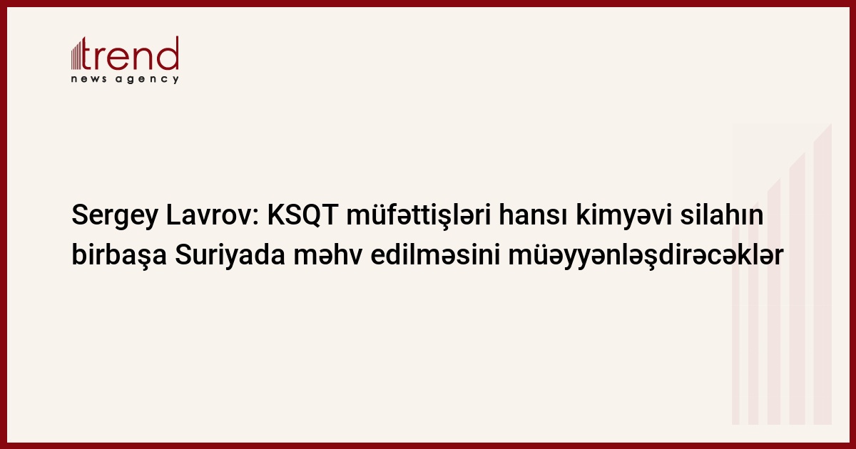 Kimyəvi silahların qadağan olunması üzrə Təşkilatın müfəttişləri müəyyən edəcəklər, hansı kimyəvi silahı Suriyada, hansıları isə xaricdə məhv etmək lazımdır. Trend-in RİA Novosti agentliyinə istinadən verdiyi məlumata görə, Rusiyanın xarici işlər naziri Sergey Lavrov "Kommersant" qəzetinə müsahibəsində bildirib.