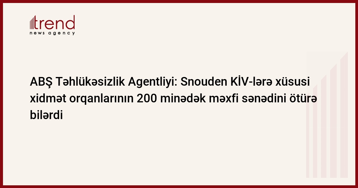 ABŞ Mərkəzi Kəşfiyyat İdarəsinin sabiq əməkdaşı Edvard Snouden KİV-lərə ABŞ-ın xüsusi xidmət orqanlarına məxsus 200 minədək məxfi sənədini ötürə bilərdi. Trend-in RİA Novosti agentliyinə istinadən verdiyi məlumata görə, bu barədə ABŞ Milli Təhlükəsizlik Agentliyinin rəhbəri general Kit Aleksander bildirib.
