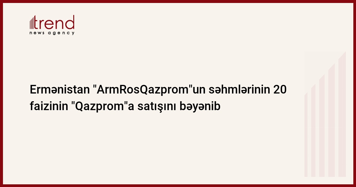 Ermənistan hökuməti cümə axşamı keçirilən iclasda "ArmRosqazprom" Qapalı Səhmdar Cəmiyyətinin səhmlərinin 20 faizlik hissəsinin Rusiyanın "Qazprom" şirkətinə satışı haqqında müqavilənin imzalanmasını bəyənib. Trend-in məlumatına görə, bu barədə ARKA xəbər verib.