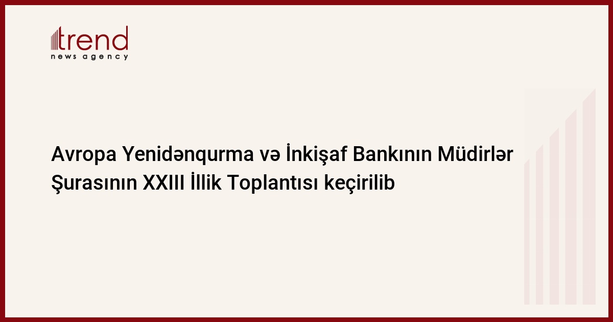 15-16 may tarixlərində Polşanın Varşava şəhərində Avropa Yenidənqurma və İnkişaf Bankının (AYİB) Müdirlər Şurasının XXIII İllik Toplantısı keçirilib.